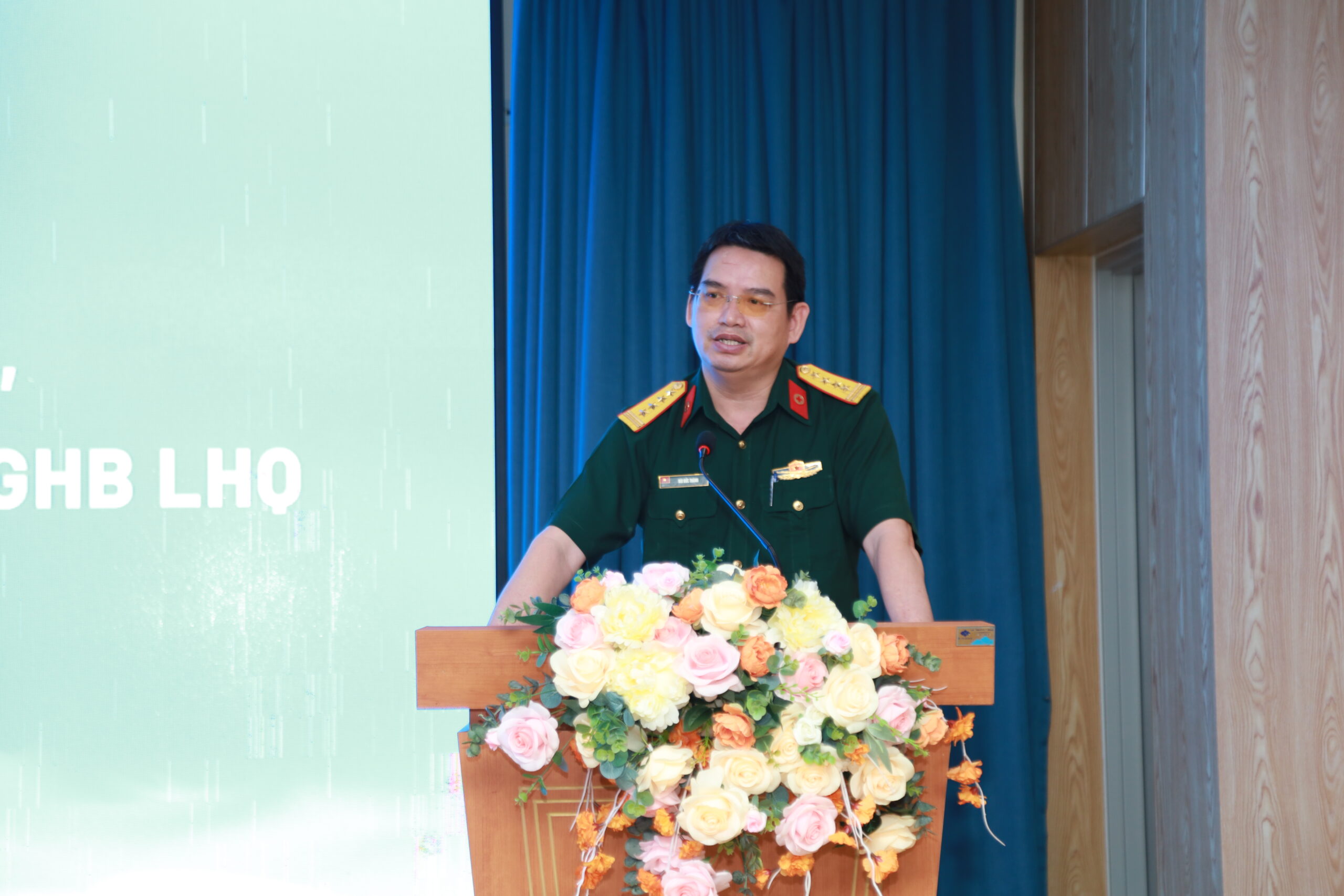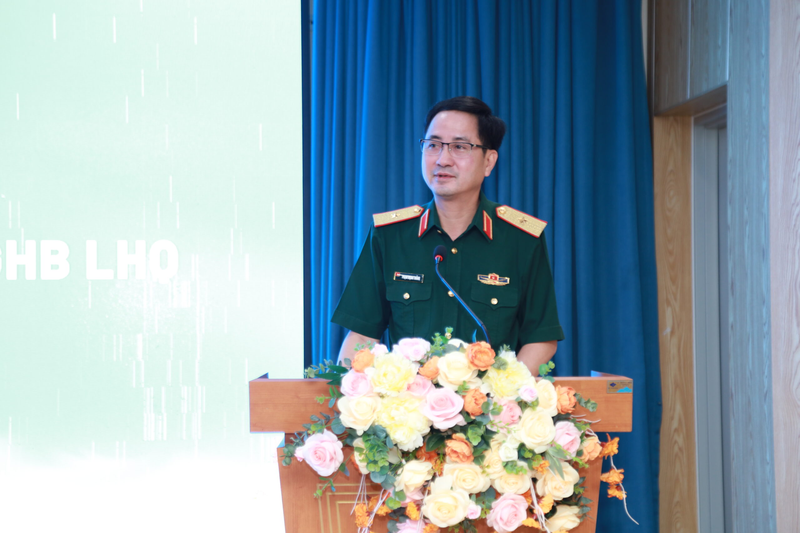 Đại tá Bùi Đức Thành, Phó Giám đốc Bệnh viện Quân y 175 phát biểu tại hội nghị