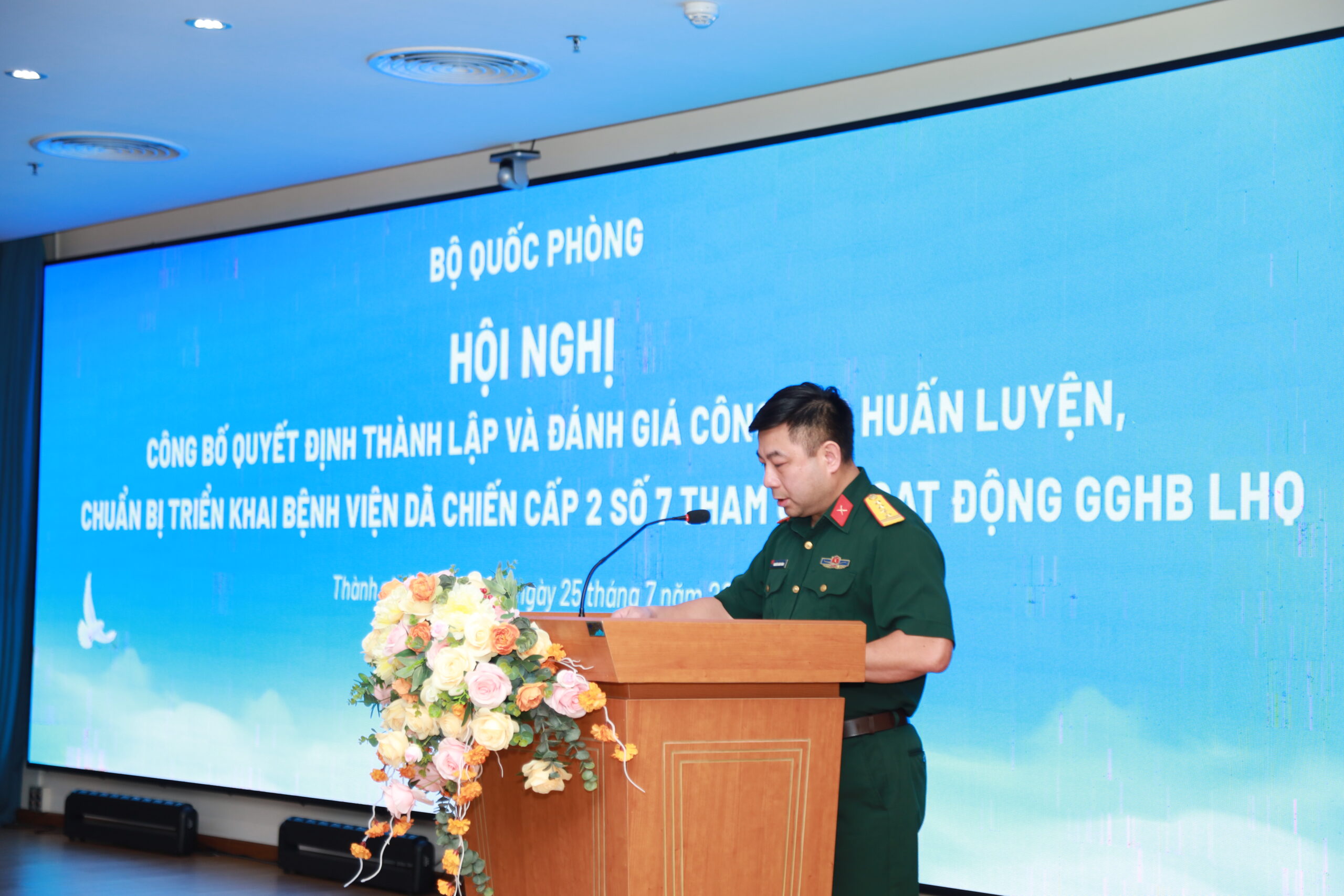 Tại hội nghị, Đại tá Nguyễn Xuân Thành, Trưởng phòng Tham mưu Kế hoạch, Cục GGHB Việt Nam, công bố quyết định thành lập BVDC2.7. Việc thành lập đơn vị đánh dấu bước tiếp nối quan trọng trong chuỗi thành công của các đội hình BVDC2 Việt Nam từng tham gia nhiệm vụ tại UNMISS, thể hiện rõ cam kết và uy tín của Việt Nam với cộng đồng quốc tế trong lĩnh vực gìn giữ hòa bình.