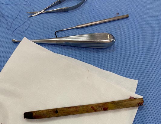 Đoạn tre đâm sâu hốc mắt bệnh nhân được ekip phẫu thuật lấy ra.