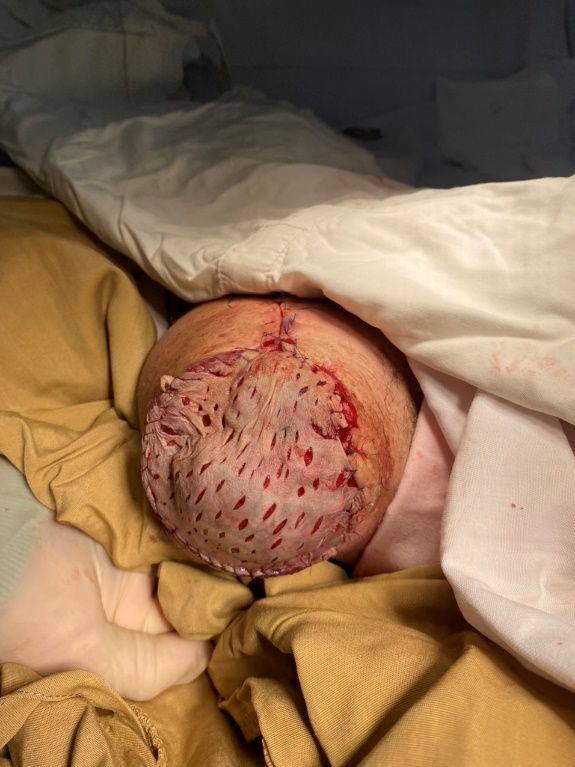 Sau hơn ba tuần điều trị quyết liệt, kiên trì bệnh nhân đã được ghép da mỏng rạch mắt lưới tự thân.
