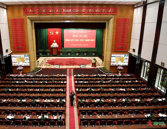 Sáng 21-12, tại Hà Nội, Tổng cục Chính trị (TCCT) tổ chức Hội nghị tổng kết công tác Đảng, công tác chính trị (CTĐ,CTCT) năm 2021 và triển khai nhiệm vụ năm 2022 theo hình thức trực tuyến. Đại tướng Lương Cường, Ủy viên Bộ Chính trị, Ủy viên Thường vụ Quân ủy Trung ương, Chủ nhiệm TCCT chủ trì hội nghị tại điểm cầu Hội trường Bộ Quốc phòng.
