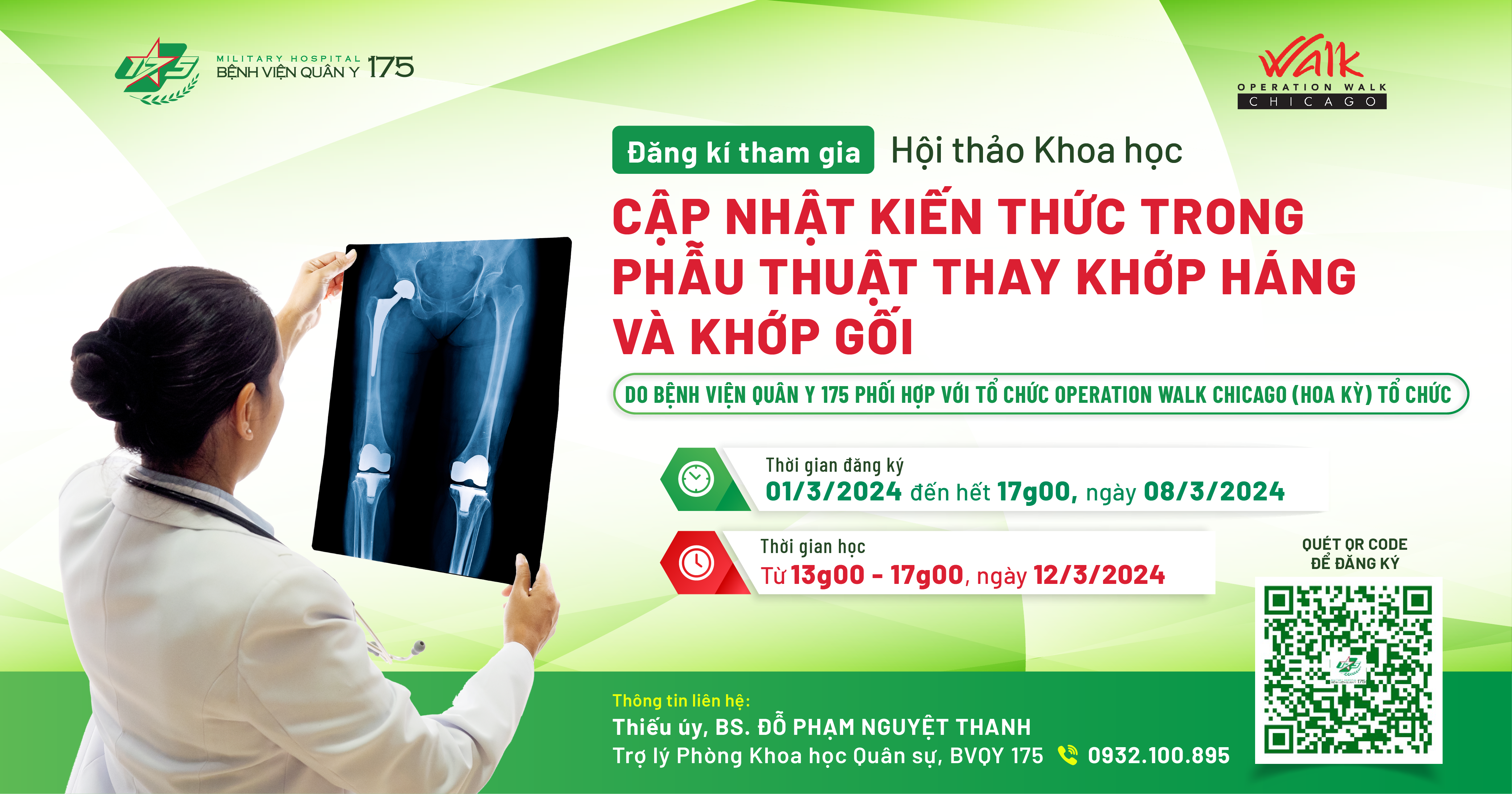 6. Thông tin liên hệ: Thiếu úy, BS. Đỗ Phạm Nguyệt Thanh – Trợ lý Phòng Khoa học Quân sự, Bệnh viện Quân y 175 – SĐT: 0932.100.895.