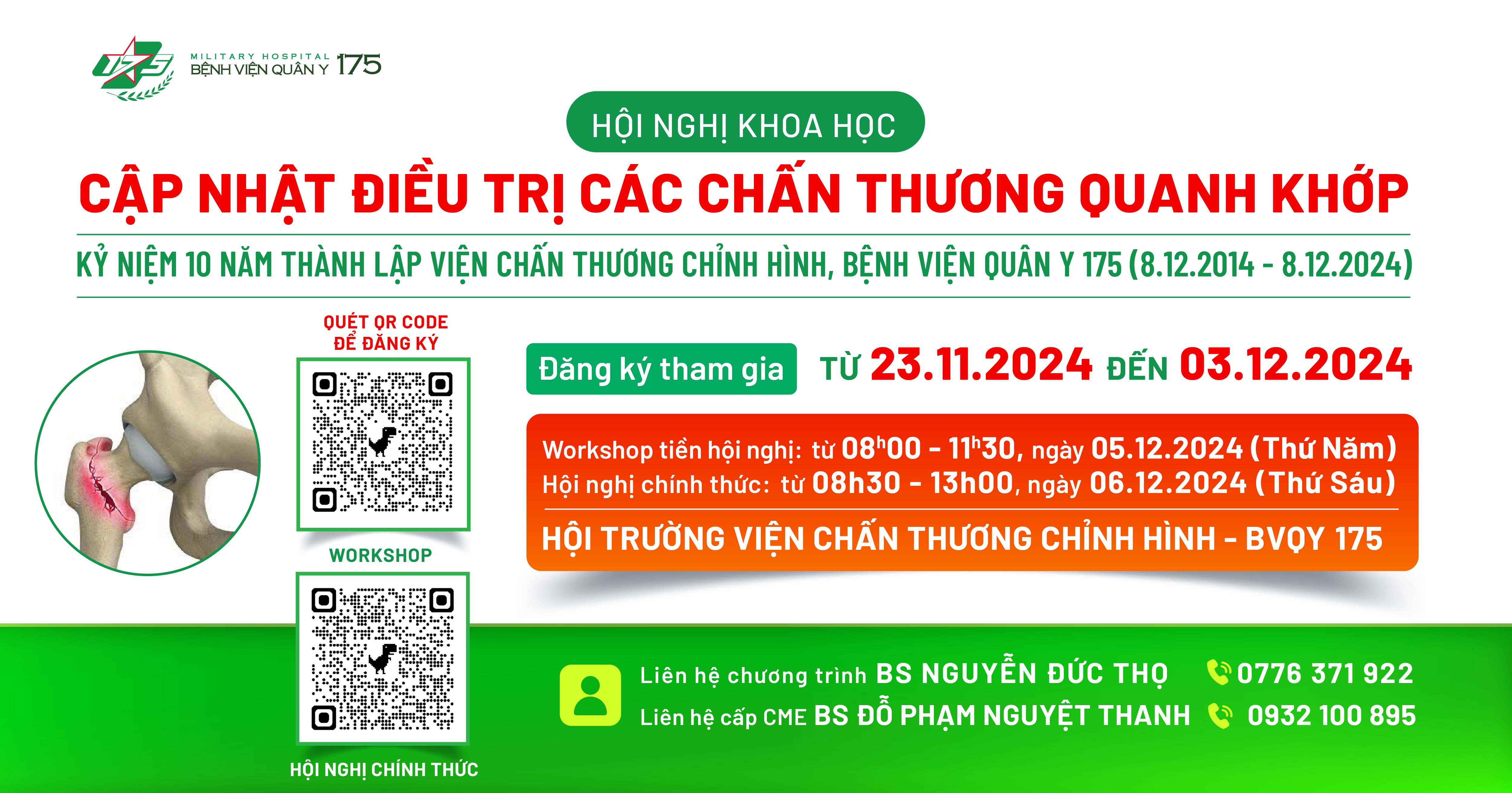 ĐĂNG KÝ THAM GIA HỘI NGHỊ KHOA HỌC KỶ NIỆM 10 NĂM THÀNH LẬP VIỆN CHẤN THƯƠNG CHỈNH HÌNH, BỆNH VIỆN QUÂN Y 175