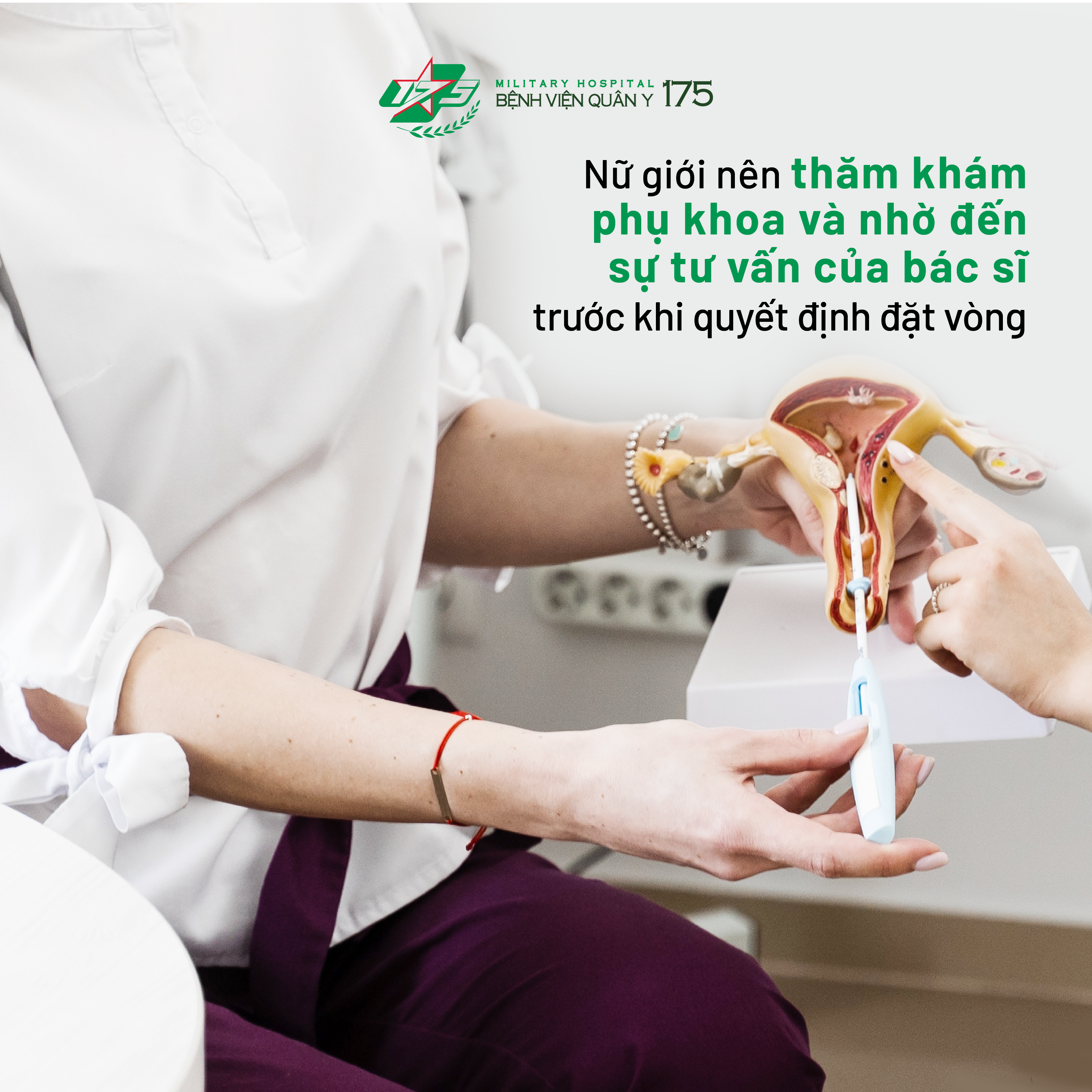 – Sau khi đặt vòng, chị em nên duy trì việc đi khám phụ khoa theo các mốc 1 tháng, 3 tháng, 6 tháng và 1 năm. Sau đó mỗi năm chị em nên đi khám một lần để kiểm tra vị trí của vòng có đúng không, thời hạn của vòng cũng như tình trạng sức khỏe phụ khoa hiện tại;