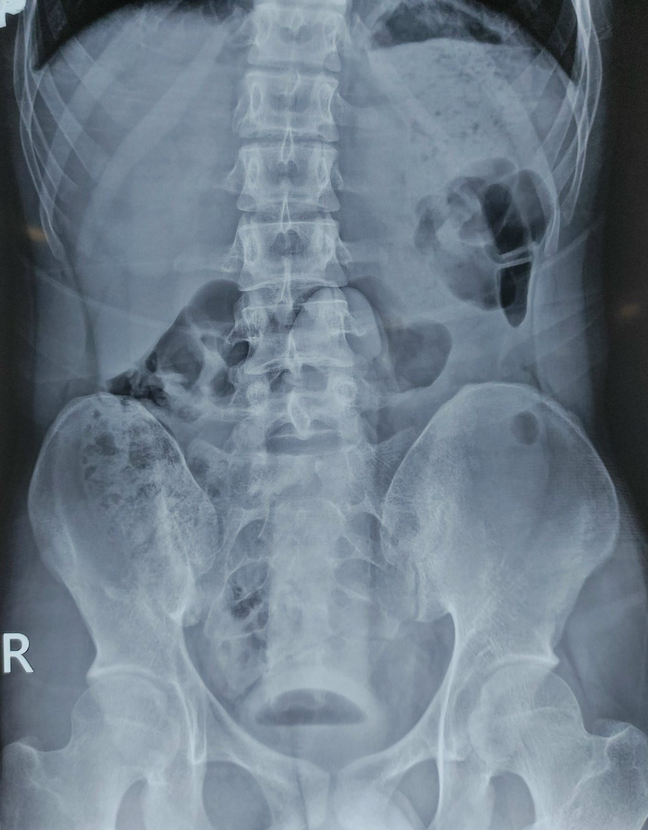 Qua phim X-Quang, các bác sĩ phát hiện dị vật đã chui sâu vào trong trực tràng của nam bệnh nhân