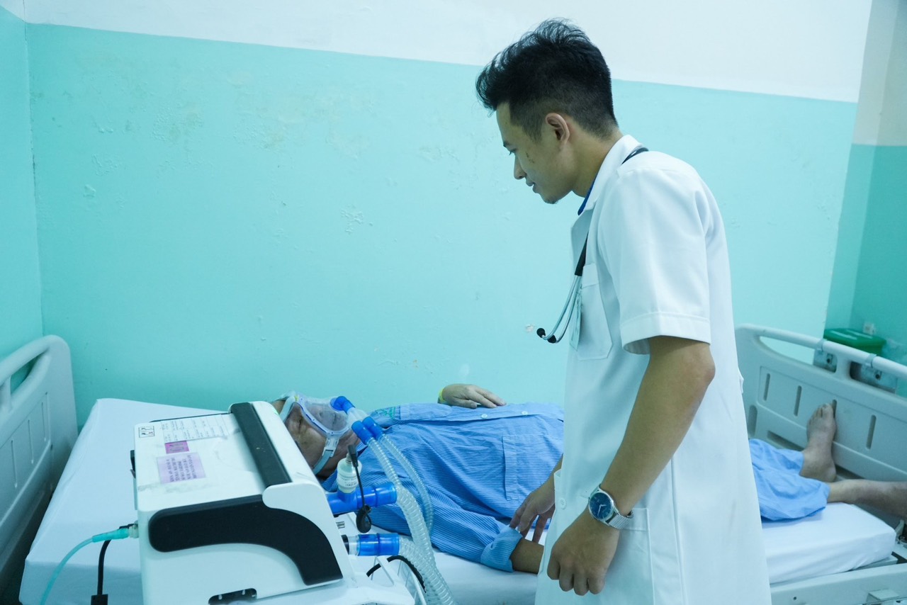 Trung uý, BS Nguyễn Công Trường hướng dẫn sử dụng thở máy áp lực dương liên tục không xâm nhập (CPAP)