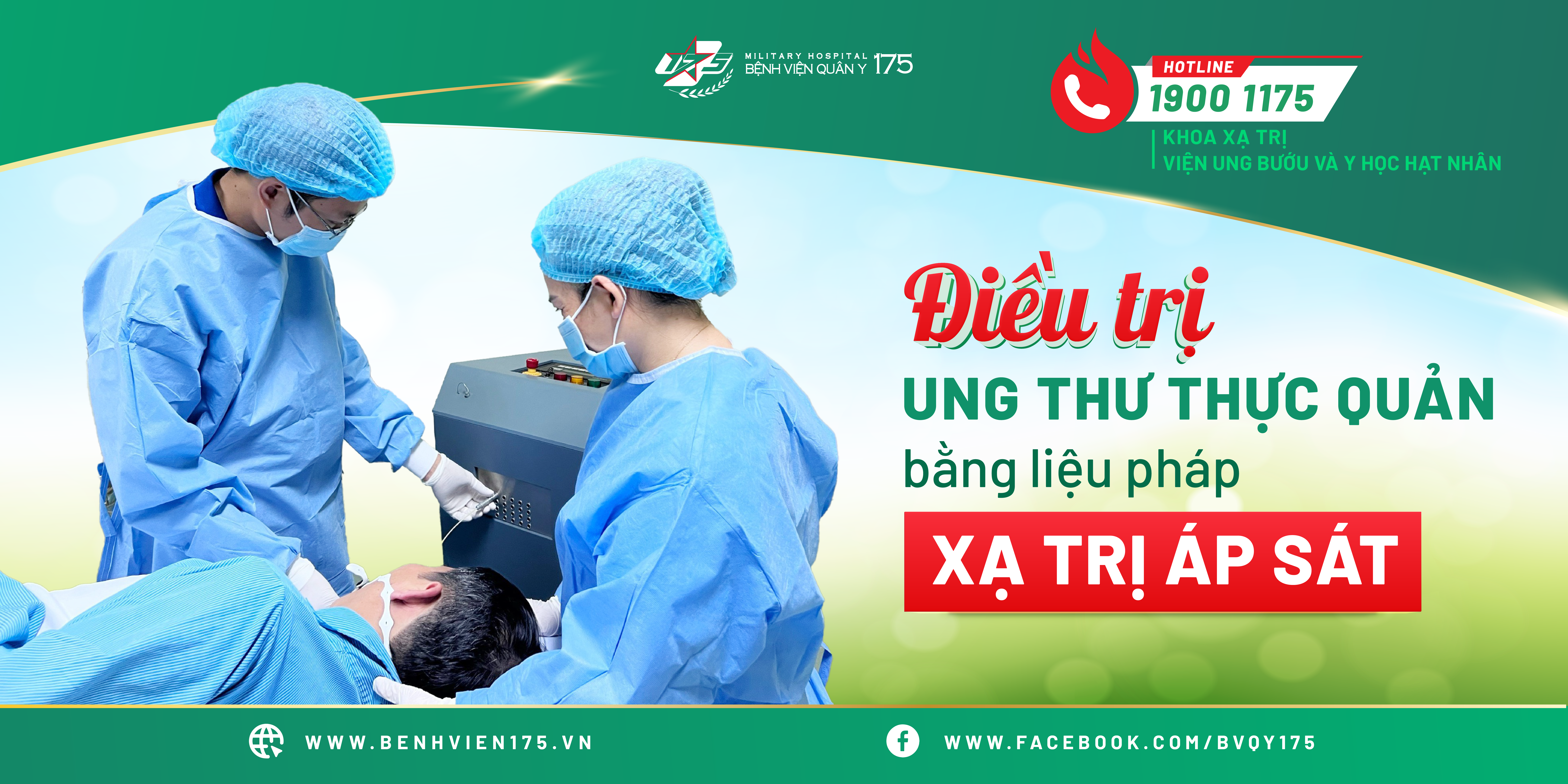 Khoa Xạ trị – Viện Ung bướu & Y học Hạt nhân, Bệnh viện Quân y 175 được trang bị cơ sở vật chất hiện đại và đội ngũ chuyên gia y tế giàu kinh nghiệm. Hiện nay, Khoa Xạ trị được trang bị 2 máy Linac hiện đại, đảm bảo liệu pháp xạ trị chùm tia ngoài chính xác và hiệu quả, được bổ sung bởi hệ thống Afterloading tiên tiến dành cho xạ trị áp sát, cho phép điều trị nhắm mục tiêu và cục bộ đối với nhiều loại ung thư khác nhau. Việc tích hợp máy PET/CT và chẩn đoán hình ảnh giúp nâng cao hơn nữa khả năng chẩn đoán, cho phép lập kế hoạch điều trị chính xác.