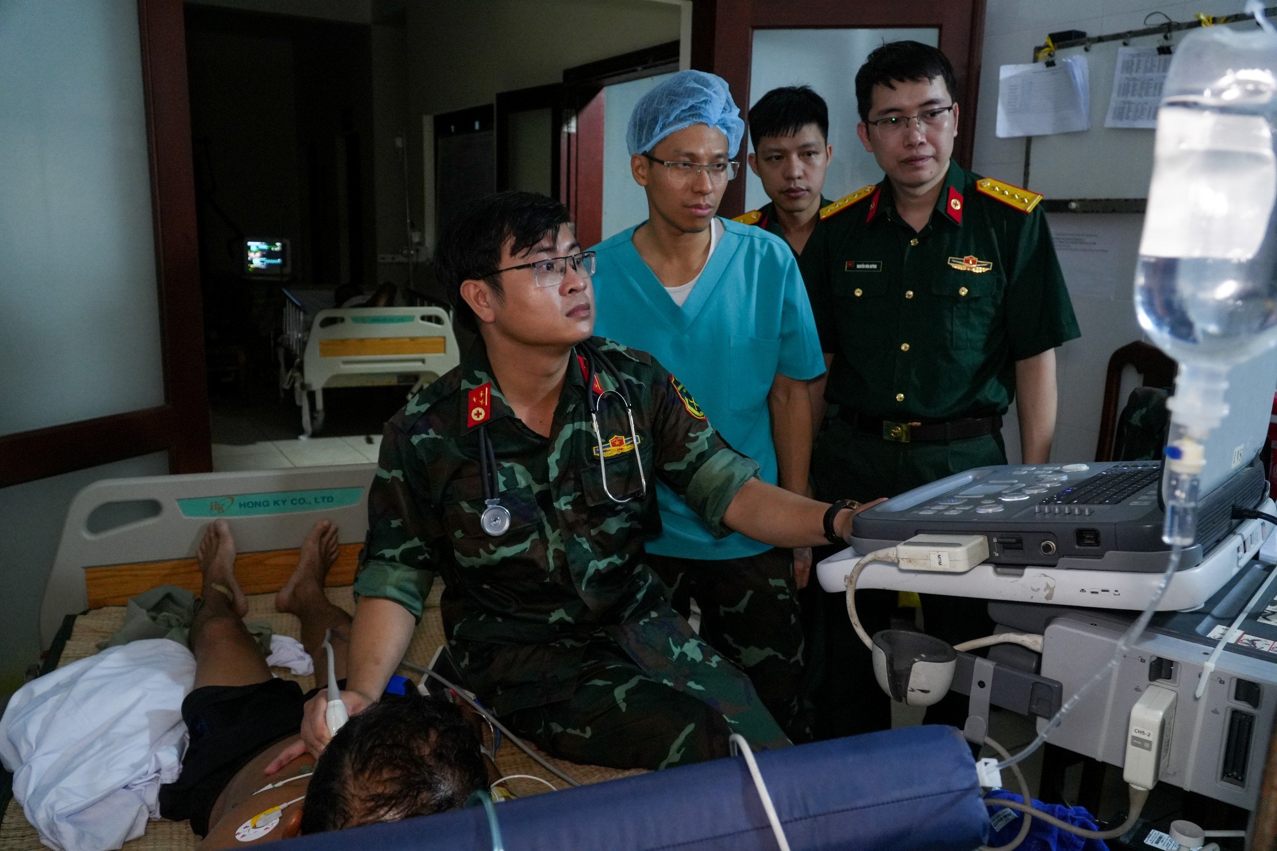 Các bác sỹ siêu âm cho người bệnh ngay tại Bệnh xá đảo Trường Sa.