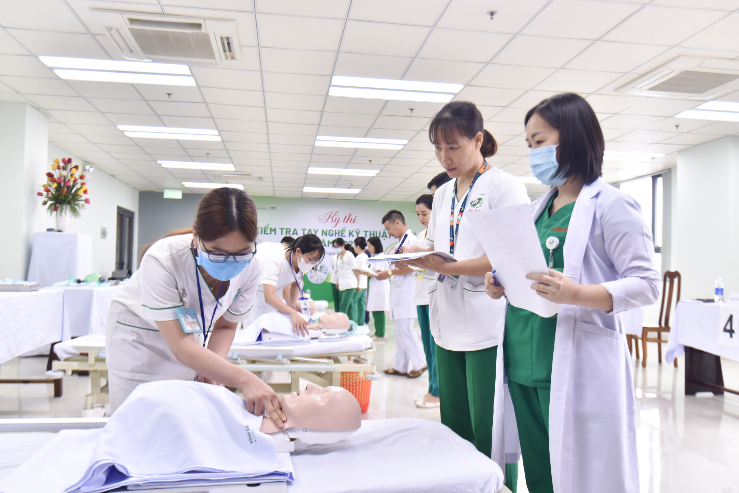 Các phần thi thực hành chuyên khoa đã diễn ra từ ngày 5/6 đến ngày 11/8, tại 12 khoa Cận lâm sàng và lâm sàng. Phần thi lý thuyết và thực hành kỹ thuật cấp cứu ngừng tuần hoàn hô hấp đã diễn ra vào ngày 22/8/2023.