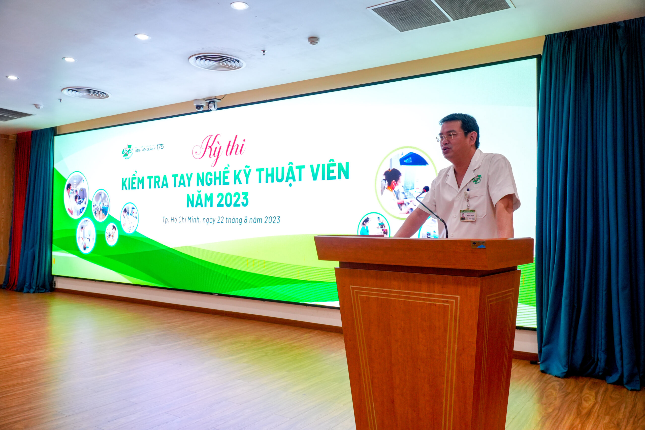 Đến dự và phát biểu chỉ đạo, Thiếu tướng, TS.BS. Trần Quốc Việt – Giám đốc Bệnh viện Quân y 175 yêu cầu ban giám khảo chấm thi công bằng, khách quan, đánh giá thực chất trình độ của từng kỹ thuật viên, đảm bảo kỳ thi mang lại hiệu quả thiết thực. Từ đó xây dựng kế hoạch học tập, bồi dưỡng cụ thể, tiếp tục nâng cao kiến thức chuyên môn, đạo đức nghề nghiệp và văn hóa ứng xử cho đội ngũ kỹ thuật viên, hướng đến sự hài lòng của người bệnh, góp phần xây dựng bệnh viện ngày càng phát triển vững mạnh.