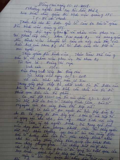 Đồng Nai, ngày 15 tháng 12 năm 2018, Những người sinh tôi ra lần thứ hai – Xin kính chào Giám đốc Bệnh viện Quân y 175 – TP. Hồ Chí Minh, Trước hết cho tôi được gửi lời cám ơn Bác sĩ Giám đốc Bệnh viện Quân y 175 cùng đội ngũ bác sĩ […]