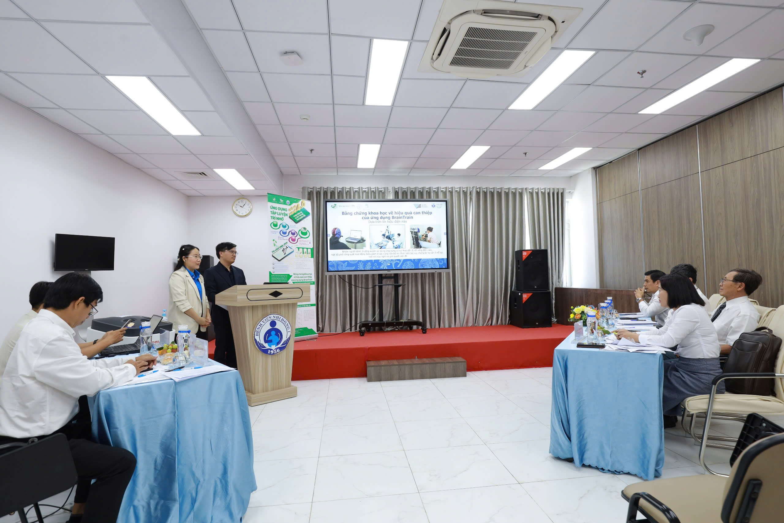 Ths Bs Hoàng Tiến Trọng Nghĩa- Chủ nhiệm Khoa Nội thần kinh cùng đồng nghiệp báo cáo Công trình khoa học trước Hội đồng chuyên môn về Xây dựng ứng dụng để tập luyện trí nhớ bằng Tiếng Việt trong điều trị sa sút trí tuệ.