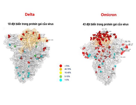 Hình ảnh so sánh biến thể Delta và Omicron