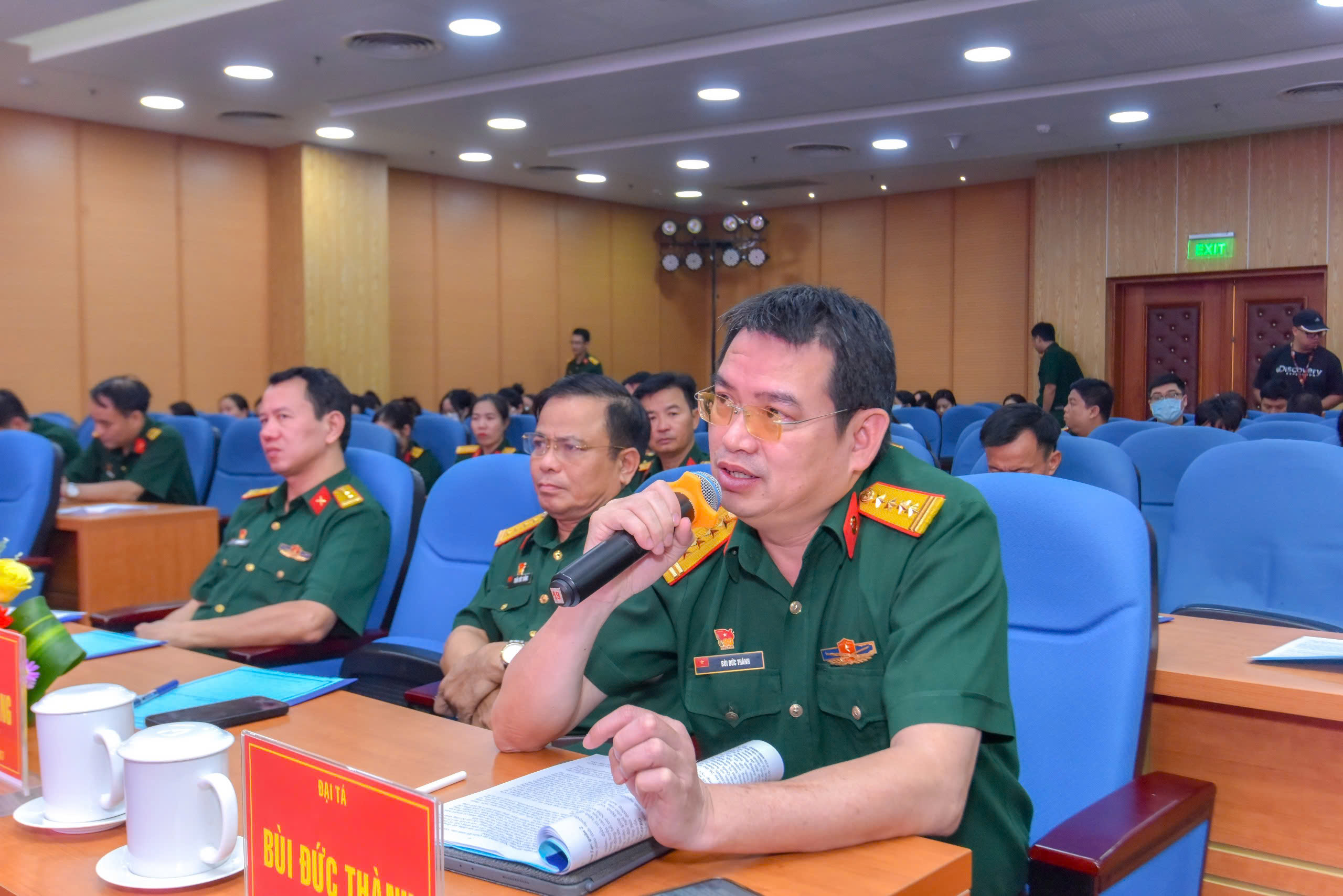 Đại tá, TS.BS Bùi Đức Thành – Phó Giám đốc Bệnh viện Quân y 175 đóng góp ý kiến tại Hội nghị