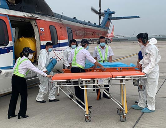 Nhận được công điện khẩn cần cấp cứu trường hợp bị uốn ván tiên lượng nặng ở đảo Song Tử Tây, Binh đoàn 18 cùng đội Quân y Bệnh viện 175 dùng trực thăng đưa bệnh nhân về đất liền điều trị.