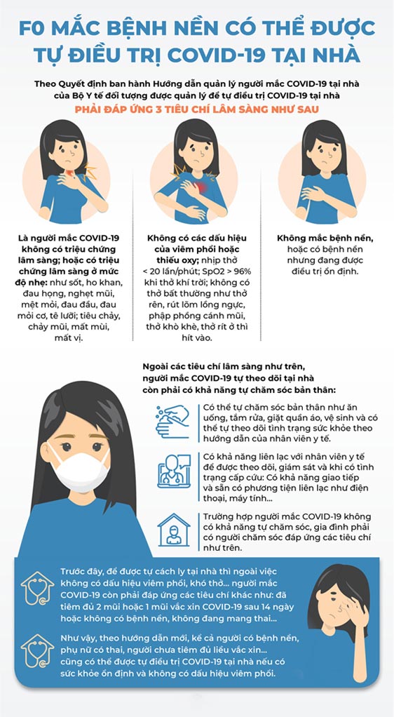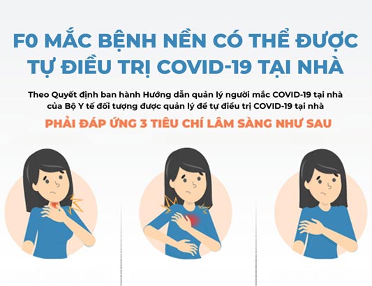 Infographic các tiêu chí F0 mắc bệnh nền có thể được tự điều trị COVID-19 tại nhà