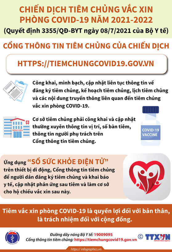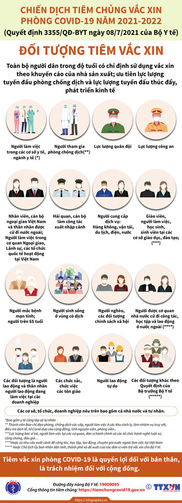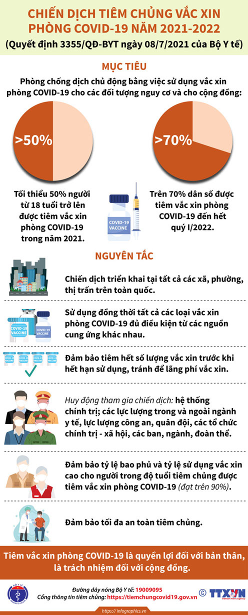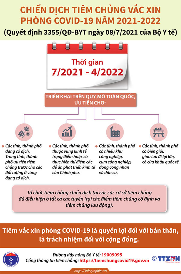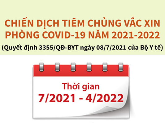 Ngày 8/7, Bộ Y tế đã ban hành Quyết định số 3355/QĐ-BYT về Kế hoạch triển khai chiến dịch tiêm vaccine phòng Covid-19 năm 2021-2022.