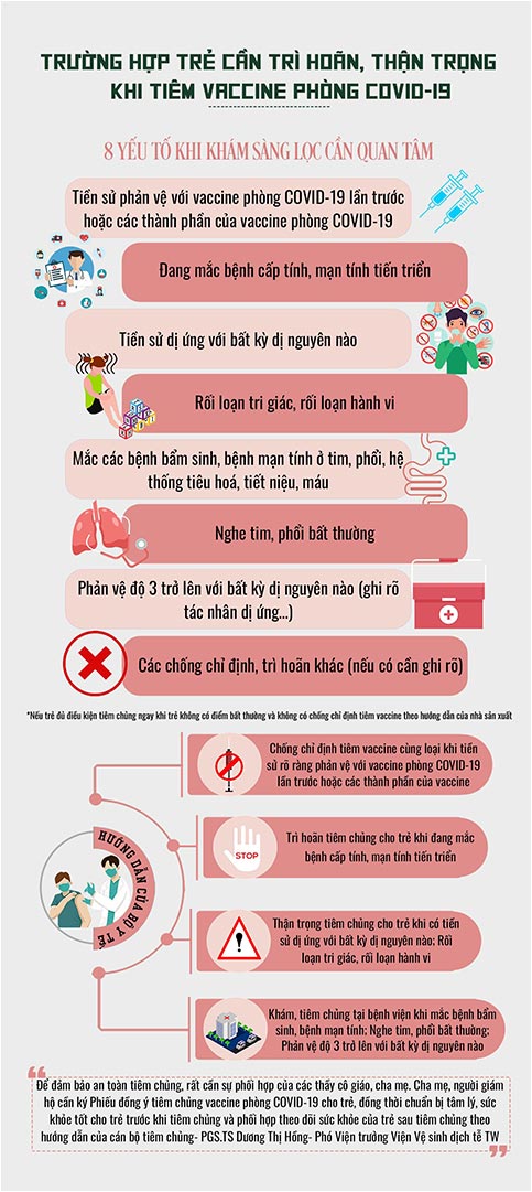 [Infographic] – Những trường hợp trẻ em cần trì hoãn, thận trọng khi tiêm vaccine COVID-19