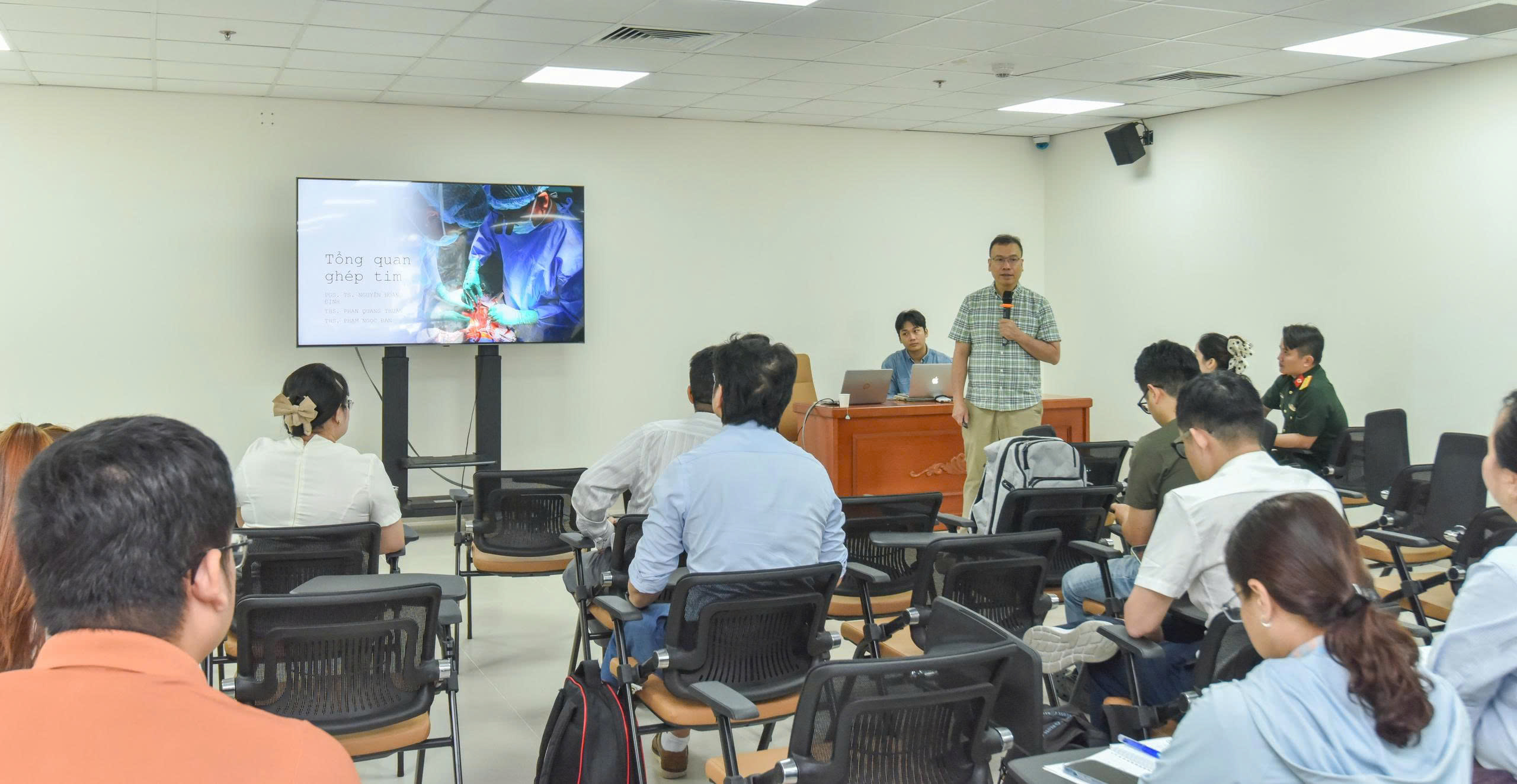 Bên cạnh các nội dung lý thuyết, học viên còn được tham gia các buổi thực hành mô phỏng (scenario) trong công tác điều phối và ghép tạng, phần đào tạo đặc biệt có tính thực tiễn cao, giúp học viên rèn luyện kỹ năng xử lý tình huống, phối hợp liên ngành, tiếp cận thực tế quy trình hiến và ghép tạng từ người hiến chết não. Đây được xem là một điểm nhấn chuyên môn quan trọng, góp phần chuẩn hóa đội ngũ cán bộ làm công tác điều phối ghép tạng trong cả nước.