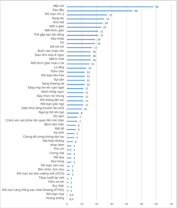 Triệu chứng thường gặp nhất ở bệnh nhân hậu COVID theo hệ cơ quan
