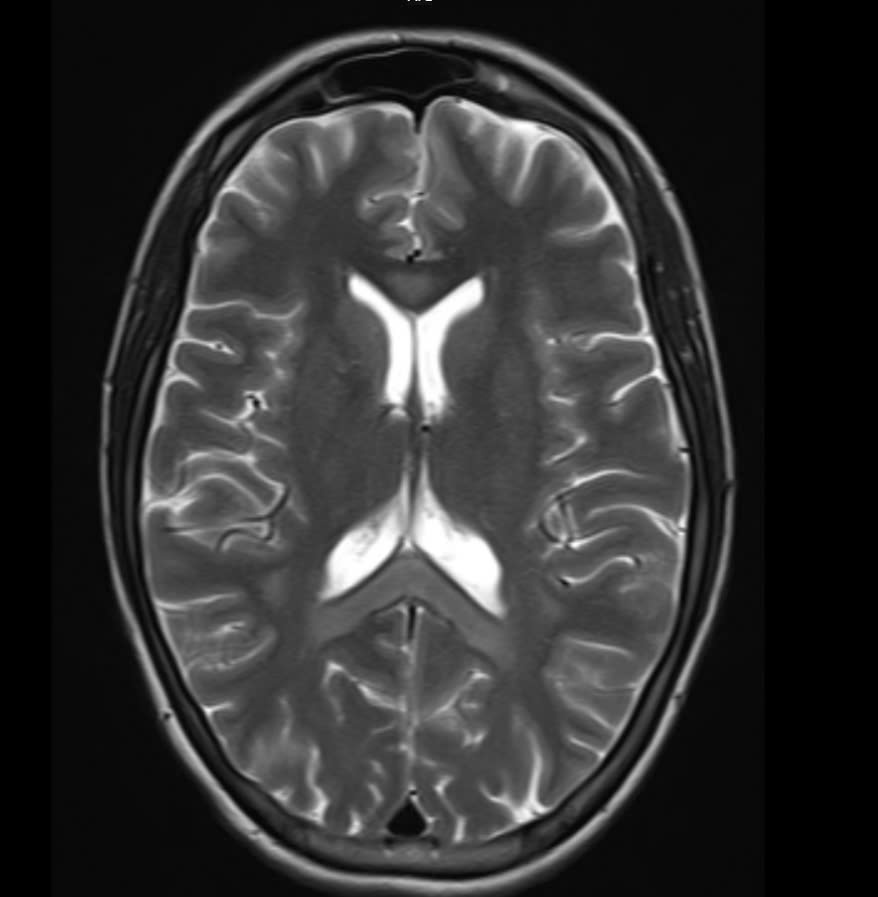 Hình ảnh chụp MRI sọ não bệnh nhân vị tổn thương lan tỏa hai bán cầu và thể chai.