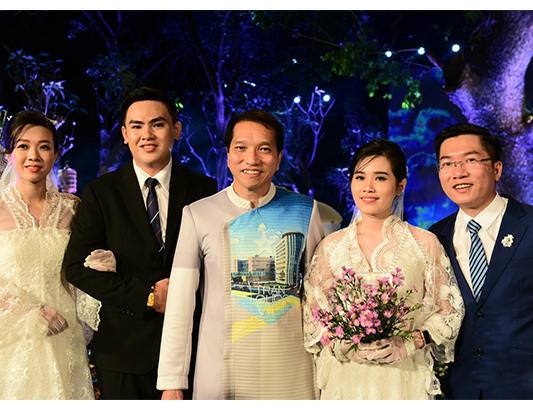 Nguyên phó thủ tướng thường trực Trương Hòa Bình, nguyên phó chủ tịch nước Trương Mỹ Hoa, chủ tịch Hội Liên hiệp Phụ nữ Việt Nam Hà Thị Nga, đại diện Quân khu 7… có mặt chúc phúc cho các cô dâu – chú rể.