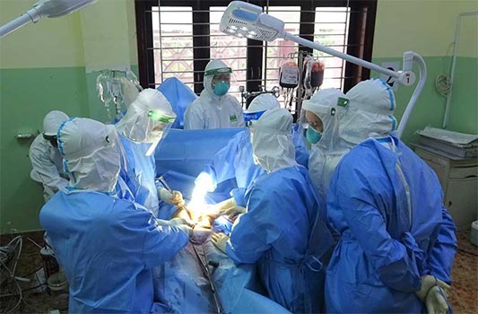 mổ cấp cứu bệnh nhân Covid-19 nặng