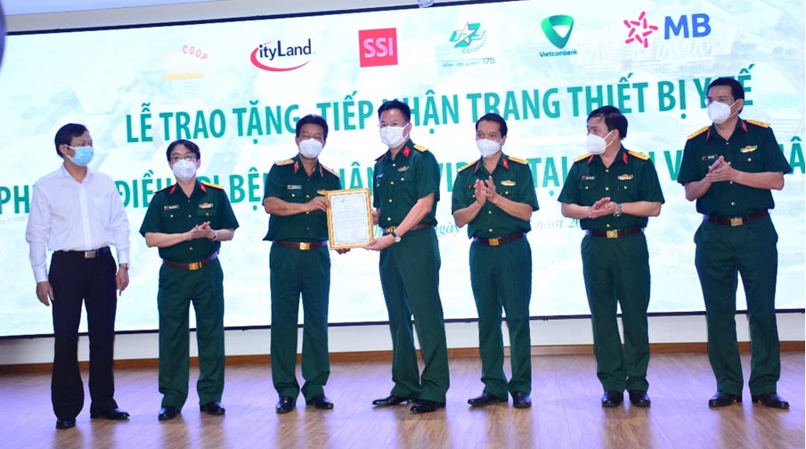 Ngay sau lễ công bố, Bệnh viện tiếp nhận trang thiết bị y tế kỹ thuật cao phục vụ điều trị bệnh nhân COVID-19 từ Đồng chí Thượng tướng Võ Minh Lương, Thứ trưởng Bộ Quốc phòng và các đơn vị đồng hành với tổng trị giá hơn 30 tỷ đồng.