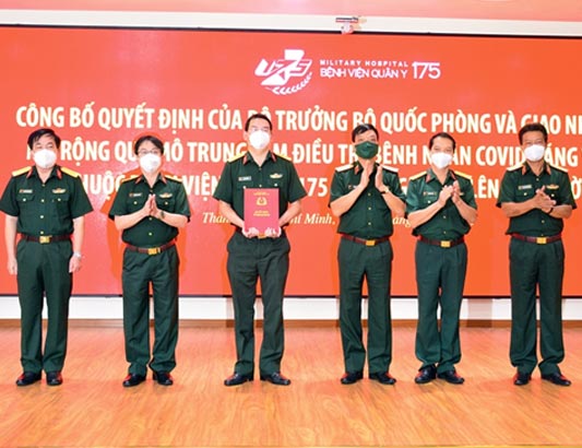 Chỉ sau 3 tuần đi vào hoạt động, Trung tâm Điều trị Bệnh nhân COVID-19 trực thuộc Bệnh viện Quân y 175 tiếp tục được Bộ trưởng Bộ Quốc phòng quyết định mở rộng quy mô từ 200 giường điều trị (Bệnh nhân nặng và vừa) lên 350 giường, kịp thời nâng cao năng lực thu dung, điều trị và chăm sóc Bệnh nhân trước tình hình đại dịch vẫn diễn biến hết sức phức tạp tại TP. HCM và các địa bàn lân cận.