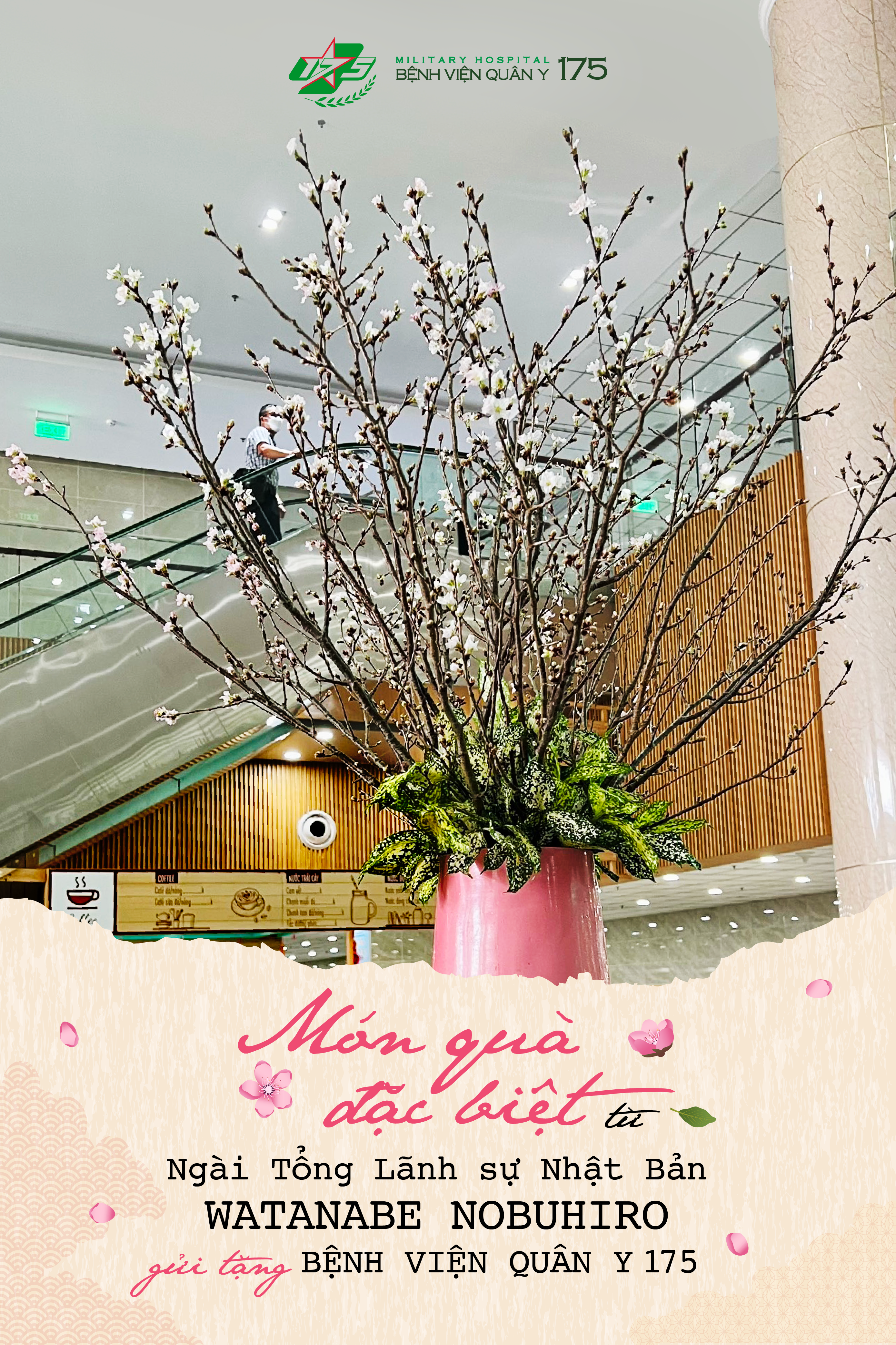 Đó chính là những cành hoa anh đào “Sakura” do chính ngài Watanabe Nobuhiro – Tổng Lãnh sự Nhật Bản tại Tp.HCM gửi tặng đến Ban Giám đốc, toàn thể cán bộ, nhân viên Bệnh viện Quân y 175. Những cành hoa anh đào được vận chuyển bằng máy bay đến Việt Nam vào đúng ngày 14/02/2023.