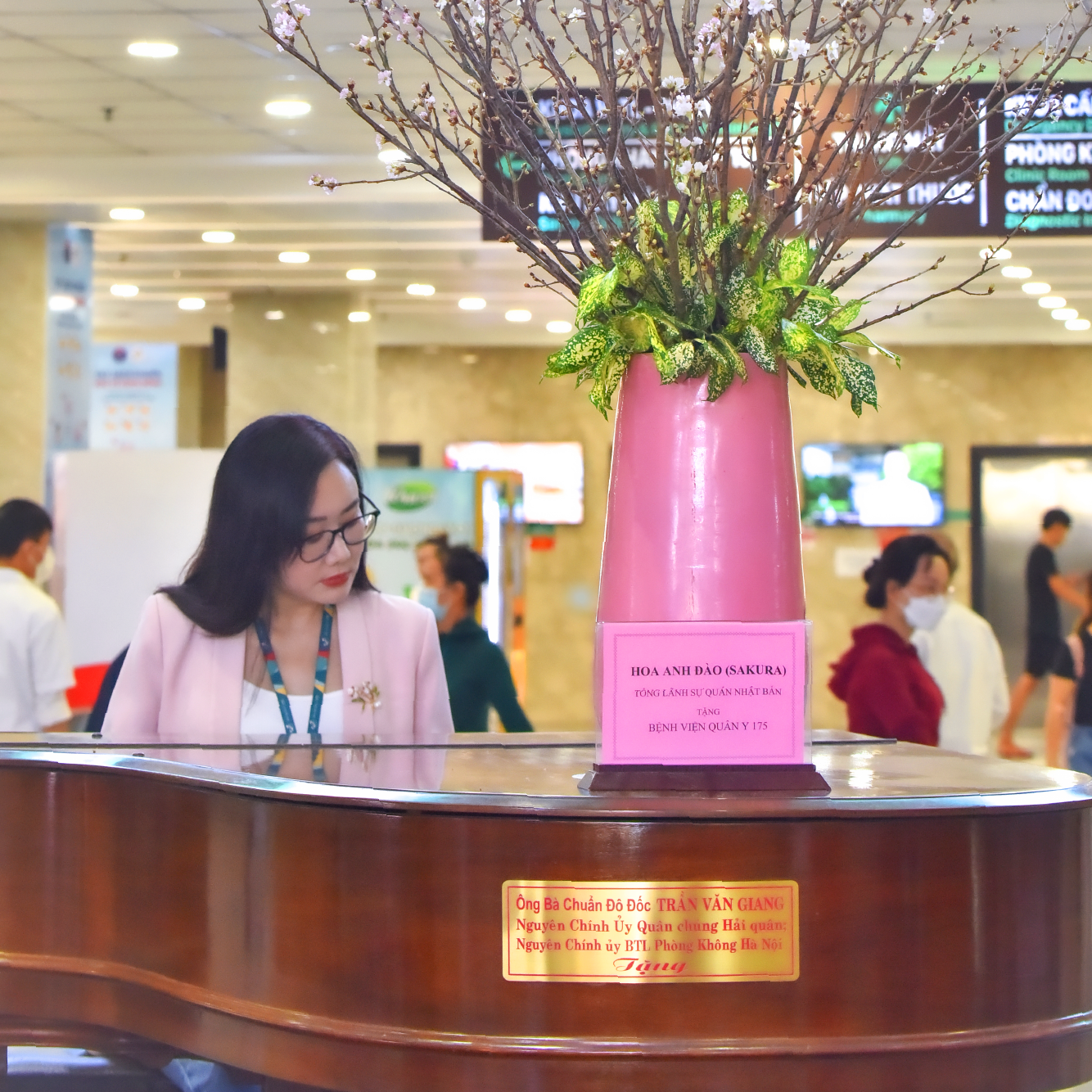 Những cành hoa anh đào tươi thắm nở rộ, được đặt trên chiếc piano nằm ngay khu vực trung tâm tại sảnh lớn toà nhà Viện Chấn thương chỉnh hình như một biểu tượng cho tình hữu nghị, mối quan hệ hợp tác tốt đẹp giữa Tổng Lãnh sự Nhật Bản tại Tp.HCM và Bệnh viện Quân y 175.