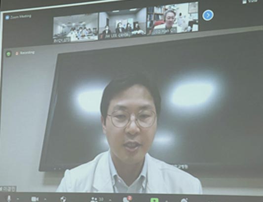 Đại diện giảng viên Khoa Phẫu thuật chỉnh hình – Bệnh viện Bundang phát biểu tại điểm cầu Hàn Quốc