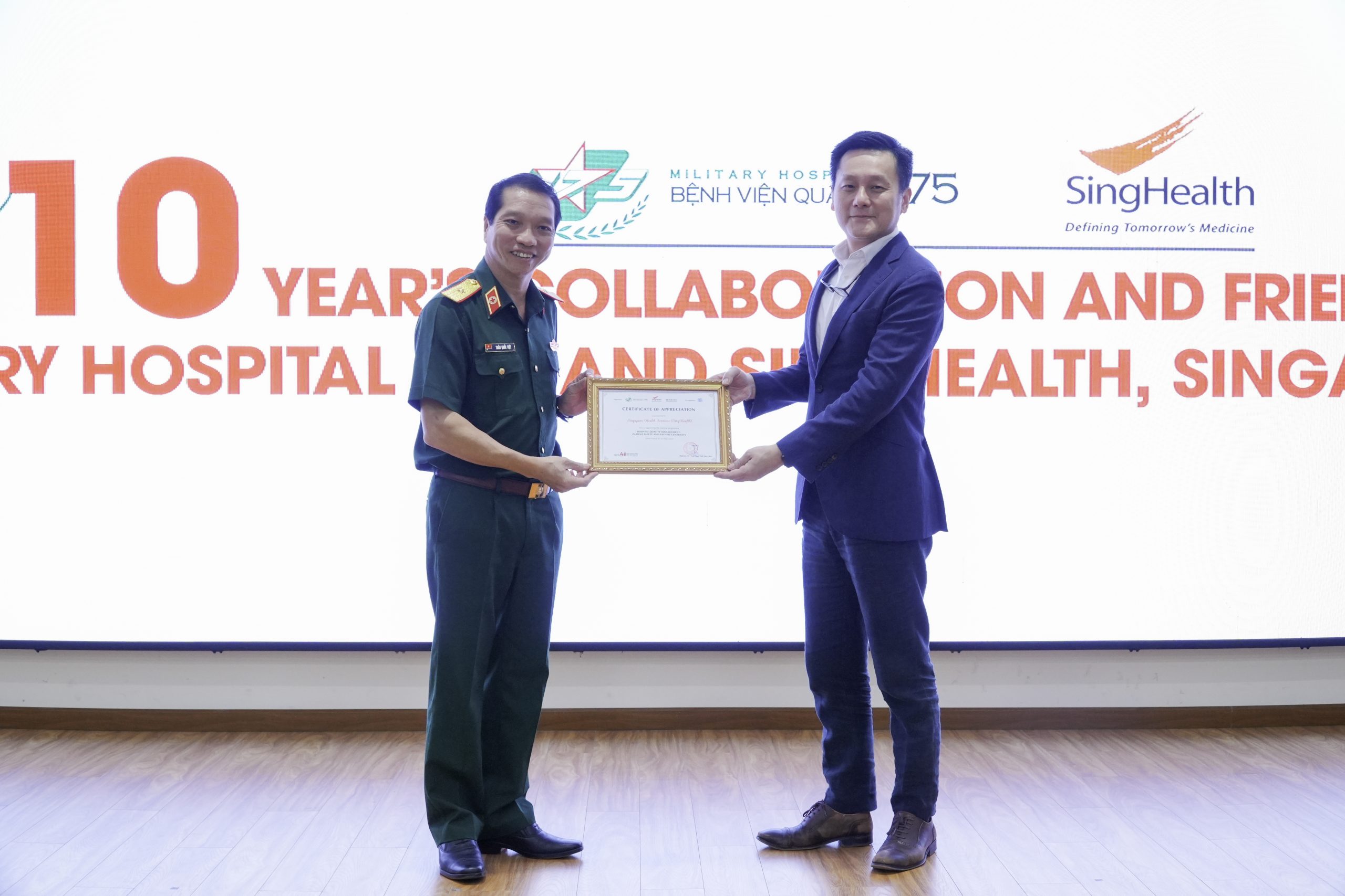 Bệnh viện Quân y 175 trao quà lưu niệm đến Tập đoàn SingHealth.