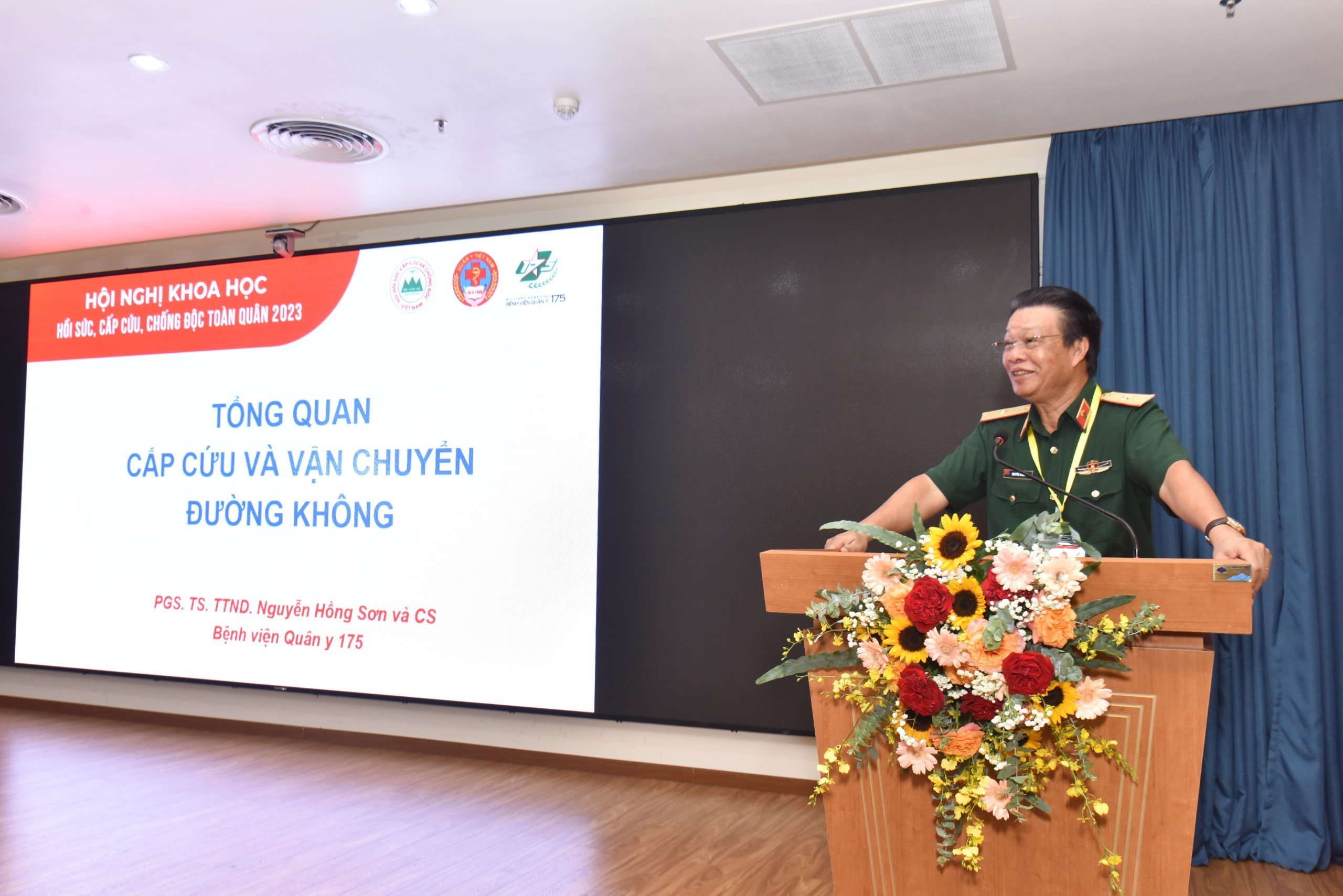Thiếu tướng, PGS.TS Nguyễn Hồng Sơn trình bày Tổng quan về vận chuyển cấp cứu đường không tại Bệnh viện Quân y 175