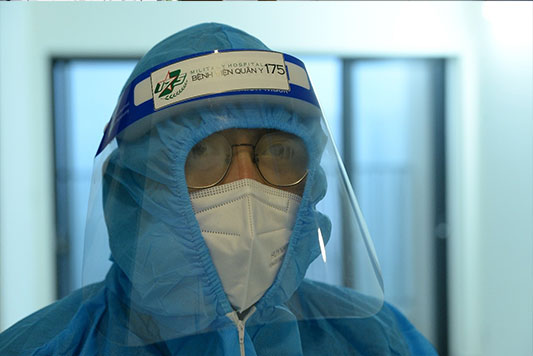 Nhưng phía sau những tấm hàng rào kiểm soát người ra vào khu vực tiếp nhận, điều trị bệnh nhân, khung cảnh tất bật của đội ngũ y, bác sĩ đã phần nào nói lên cường độ công việc của họ trong đợt bùng phát dịch Covid-19 lớn nhất từ trước đến nay.