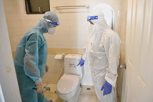 Sửa vòi nước, điện, thông tắc phòng vệ sinh… là những công việc gần như phát sinh mỗi ngày, thậm chí mỗi giờ. Trong bối cảnh chỉ có vài trăm nhân sự ngành y hỗ trợ điều trị cho hàng nghìn ca F0, chỉ riêng việc phục vụ hậu cần cũng đòi hỏi họ có thể lực và tinh thần thép.