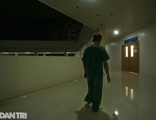 “Lần thứ 3 từ sáng đến giờ rồi, tôi mới từ trên đó xuống, tháo đồ bảo hộ để nghỉ… giờ lại mặc lại để lên. Coi như những ngày này, mình học thêm được nghề mới”, bác sĩ Hùng nói đùa trước khi vội vã lao đi.