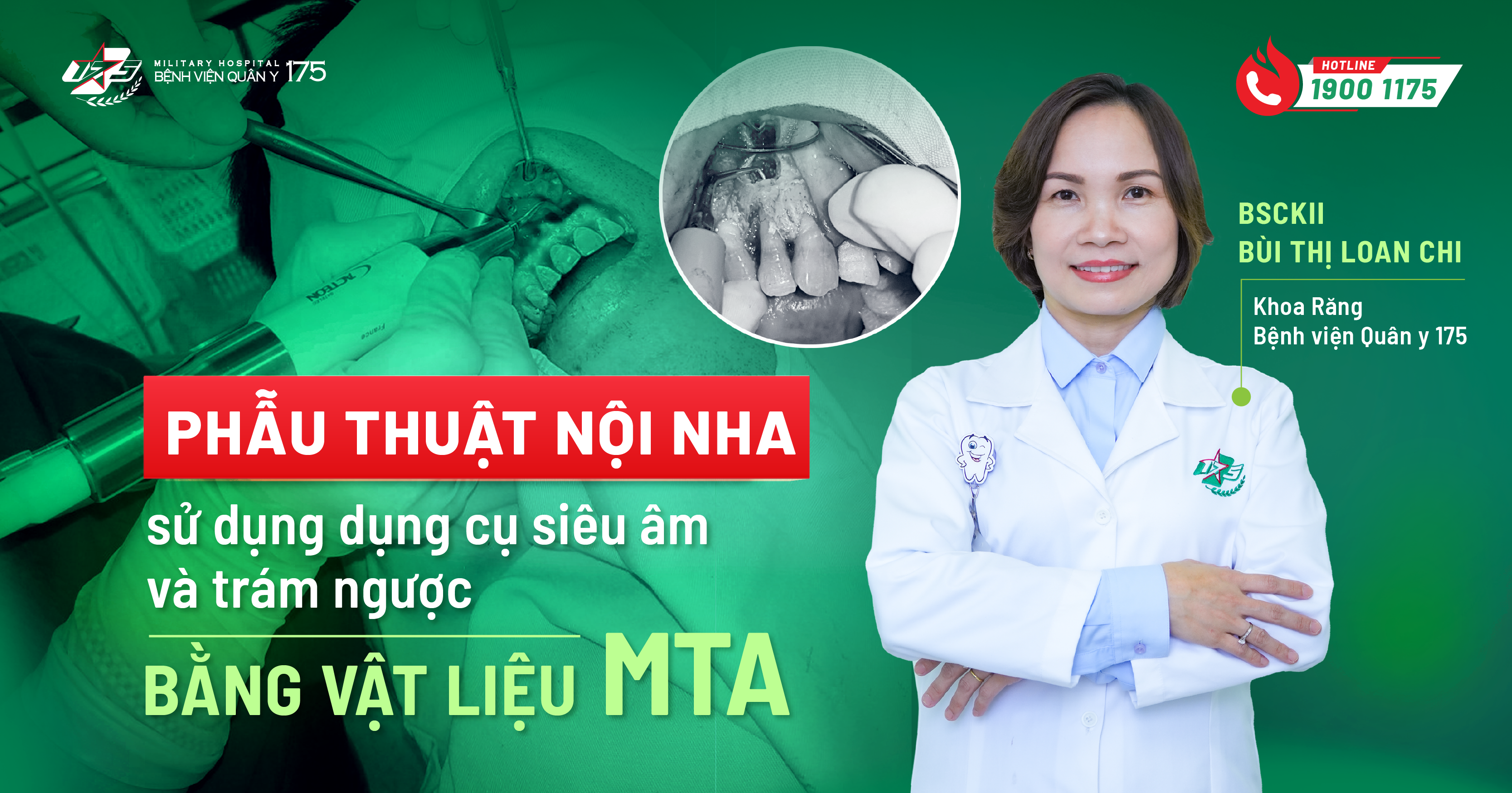 5. Bệnh viện Quân y 175 đã triển khai kỹ thuật phẫu thuật nội nha sử dụng dụng cụ siêu âm và trám ngược bằng vật liệu MTA như thế nào?