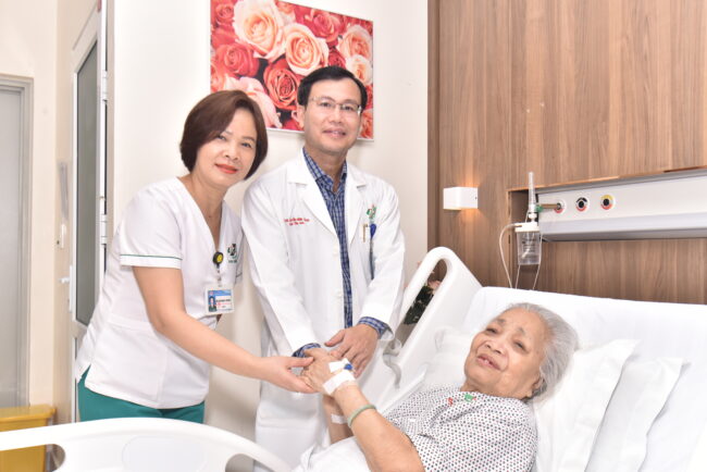 TS.BS Nguyễn Đình Thành – Bác sĩ điều trị Khoa Quốc tế – người trực tiếp thực hiện ca phẫu thuật cho biết, đây không phải là những trường hợp hiếm gặp tại khoa Quốc tế nói riêng và khoa ngoại tiêu hóa nói chung của Bệnh viện Quân y 175. Thời gian qua, bệnh viện đã phẫu thuật thành công cho nhiều người bệnh trên 90 tuổi …. Mặc dù bệnh nhân lớn tuổi thường có các bệnh lý nền nguy hiểm kèm theo, dinh dưỡng kém gây nhiều thách thức cho phẫu thuật viên nhưng với sự quyết tâm của gia đình và đội ngũ y bác sĩ, sự phối hợp nhịp nhàng với kíp gây mê, chúng tôi đã phẫu thuật thành công cắt bỏ tổn thương cho bệnh nhân.”