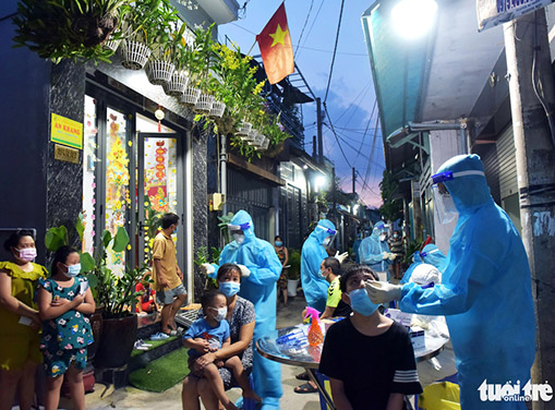 ở xã Đông Thạnh, huyện Hóc Môn sau khi có ca F0 để lấy mẫu cho toàn bộ người dân ở đây