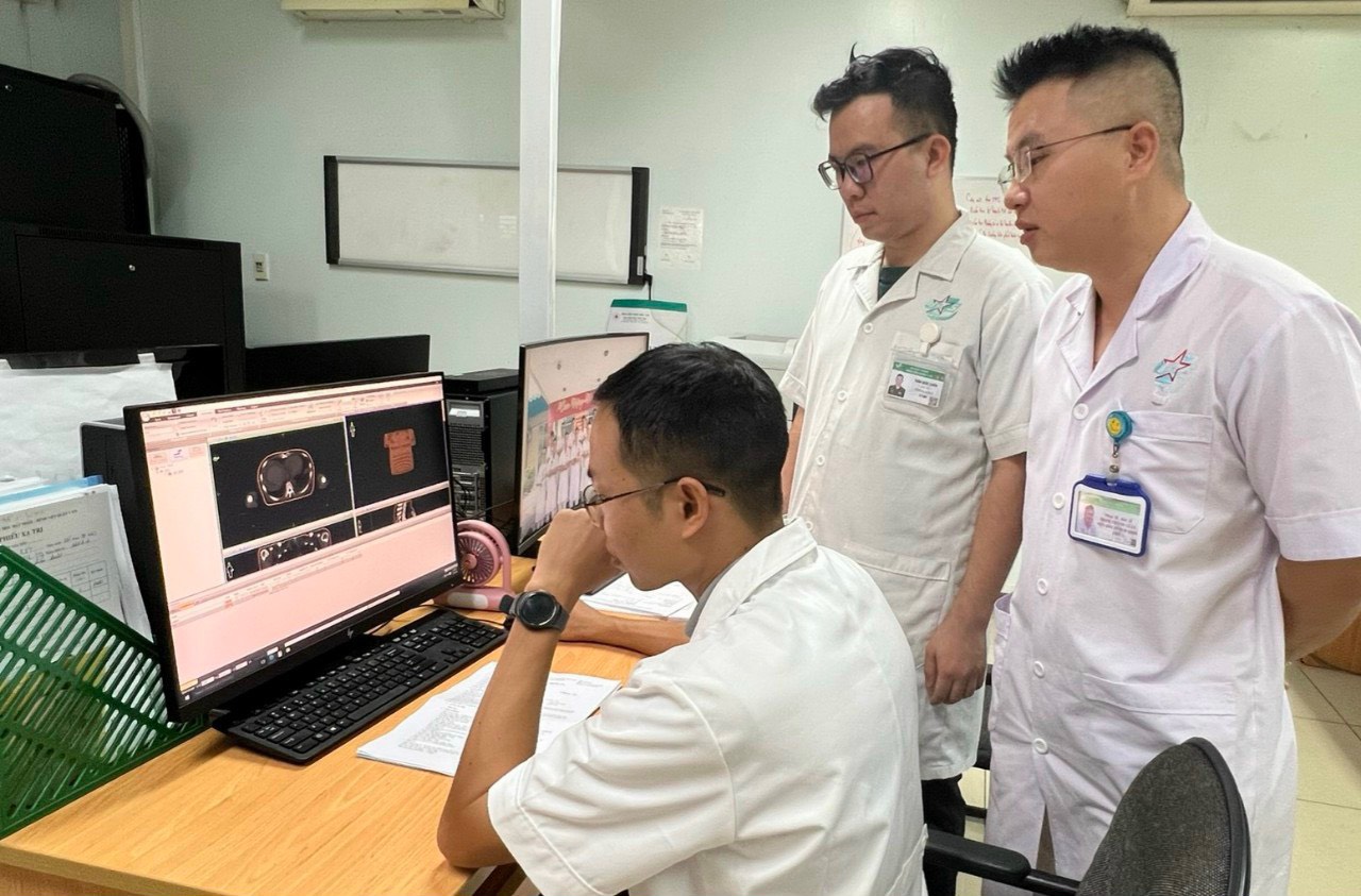 Các bác sĩ khoa Xạ trị tiến hành khám, đánh giá và hội chẩn cho bệnh nhân