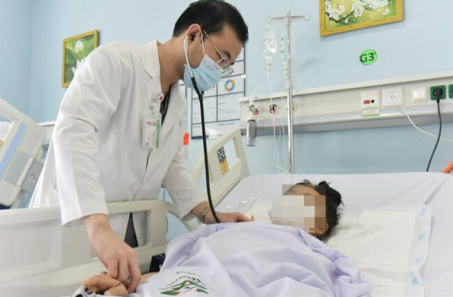 Bác sĩ Nguyễn Trọng Khôi thăm khám cho bệnh nhân.