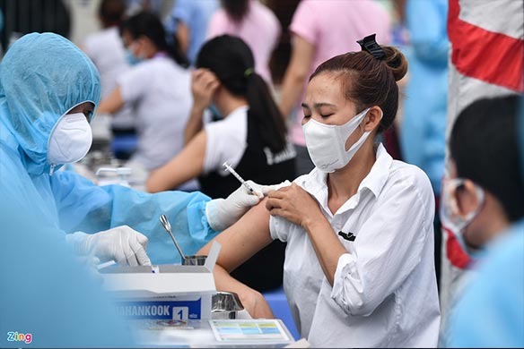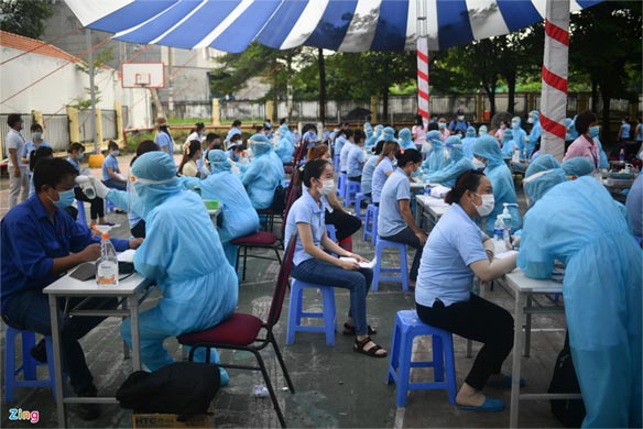 Điểm tiêm chủng dã chiến được thiết lập ngay trong khuôn viên một công ty. Nhiều nhân viên y tế cho biết khi tiêm trong các khu công nghiệp thì công nhân được sắp xếp đến tiêm chủng khá nhanh và quy củ, thuận lợi hơn so với các điểm tiêm cộng đồng.