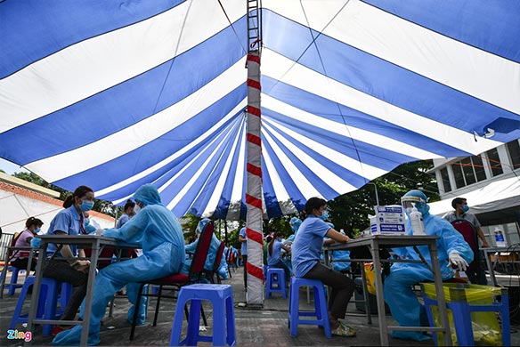 Ngày 24/6, lực lượng y bác sĩ Bệnh viện Quân y 175 tham gia chiến dịch tiêm vaccine Covid-19 tại các điểm trong cộng đồng. Đây là ngày thứ 5 TP.HCM thực hiện chiến dịch tiêm chủng lớn nhất lịch sử.