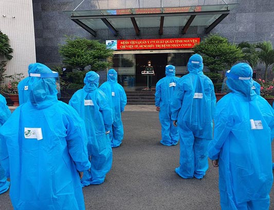 Ngày 11/7, đoàn nhân viên y tế đầu tiên của Bệnh viện Quân y 175, thuộc Bộ Quốc phòng đã lên đường đến Bệnh viện dã chiến thu dung điều trị COVID-19 tại bệnh viện dã chiến thu dung điều trị COVID-19 ở phường Bình Khánh, TP Thủ Đức để hỗ trợ TP.HCM chống dịch.