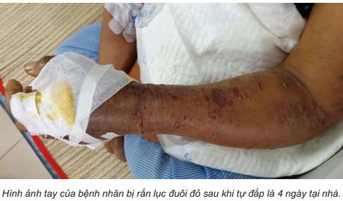 Trường hợp thứ hai là ông P.T.H (1974), bị rắn lục đuôi đỏ cắn vào mu bàn tay phải. Bệnh nhân nhập viện sau hai giờ, chưa xử trí tại nhà. Tại viện, bệnh nhân được tiêm HTKNRL, dùng kháng sinh, thuốc giảm nề, giảm đau và kiểm soát huyết áp do có tiền sử tăng huyết áp. Tay phải giảm sưng nề sau điều trị và bệnh nhân được xuất viện an toàn.