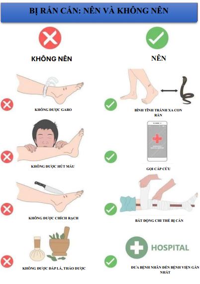 – Khi bị rắn lục cắn cần sơ cứu theo đúng hướng dẫn và nhanh chóng vận chuyển người bệnh đến cơ sở y tế để có hướng xử trí tiếp theo .