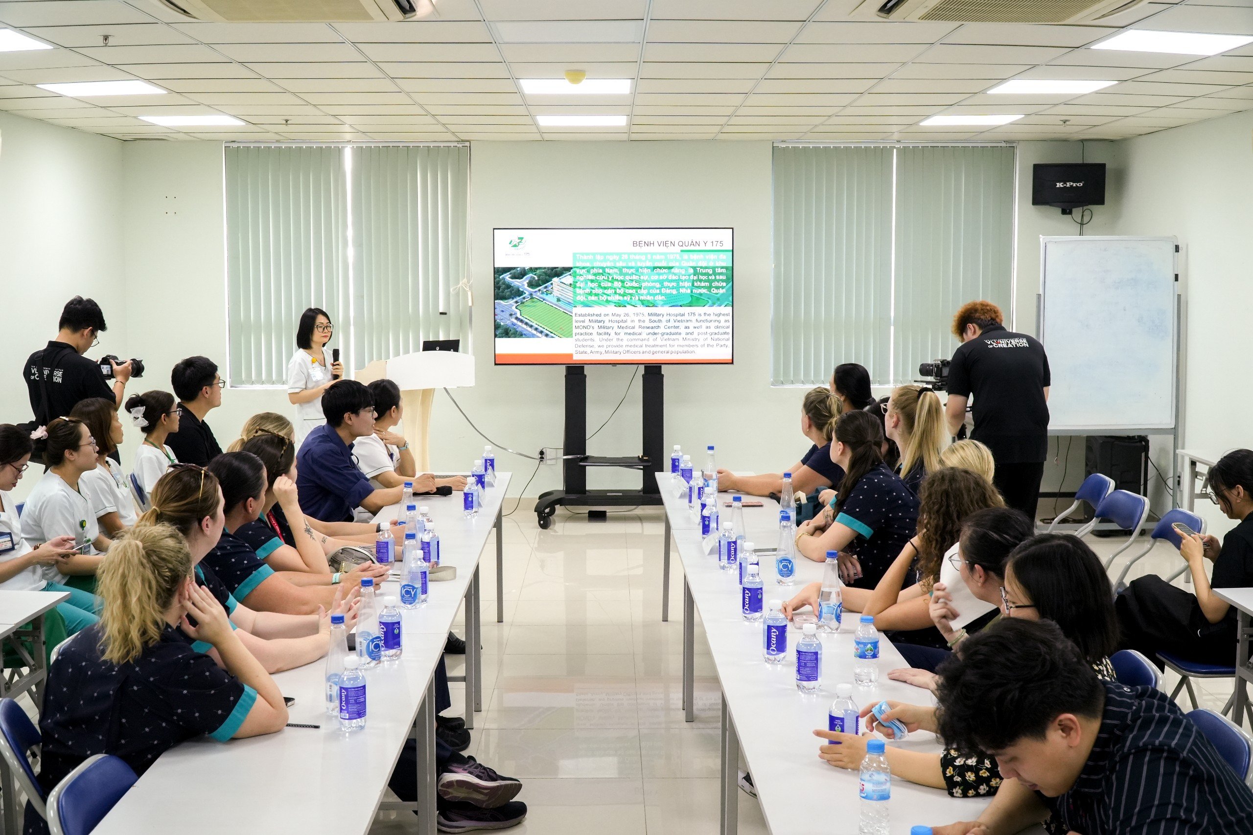 ThS Cam Ngọc Thúy – Phụ trách Phòng Điều dưỡng, Bệnh viện Quân y 175 đã chia sẻ kinh nghiệm trong công tác điều dưỡng đến các sinh viên thực tập tại Bệnh viện. Đợt tham quan này là cơ hội để các em sinh viên tìm hiểu, trao đổi, thảo luận về sự khác biệt giữa chức trách nhiệm vụ, phạm vi hành nghề, các tiêu chuẩn tuyển dụng, hệ thống đào tạo điều dưỡng của Úc và Việt Nam. Qua đó, mở ra những cơ hội kết nối hợp tác giữa các trường và bệnh viện trong tương lai.
