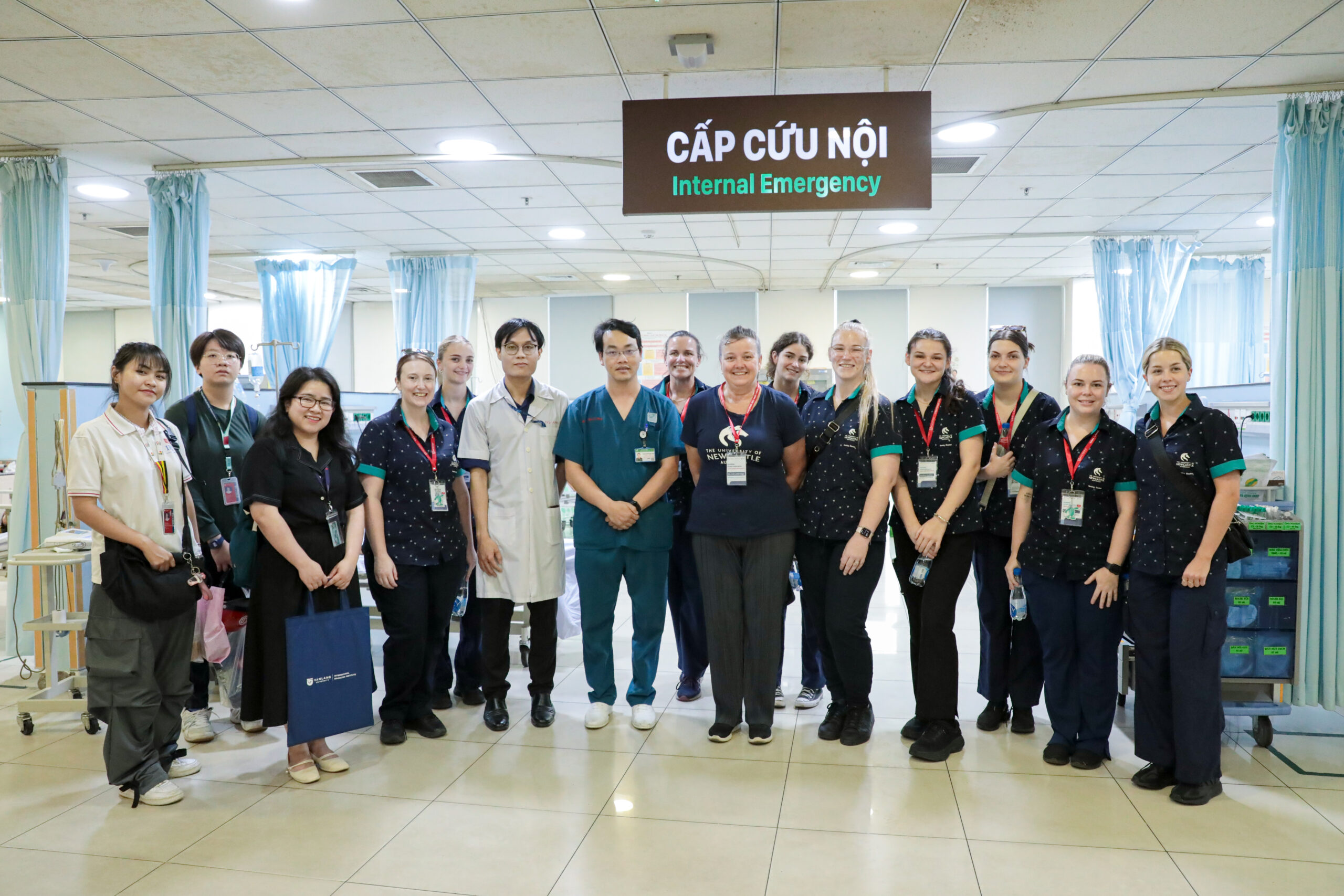 Tham gia chuyến tham quan có các giảng viên và sinh viên khối ngành sức khoẻ từ 2 trường: 6 sinh viên Đại học Văn Lang và 9 sinh viên Đại học Newcastle (Australia). Tiếp đoàn, về phía Bệnh viện Quân y 175 có Ths. Cam Ngọc Thúy – Phụ trách phòng Điều dưỡng; Thiếu tá, ThS Nguyễn Thị Ngọc Dung – Trưởng Ban Hành chính – Hợp tác Quốc tế, Phòng Tham mưu Hành chính cùng các cán bộ chỉ huy phụ trách hướng dẫn các sinh viên.
