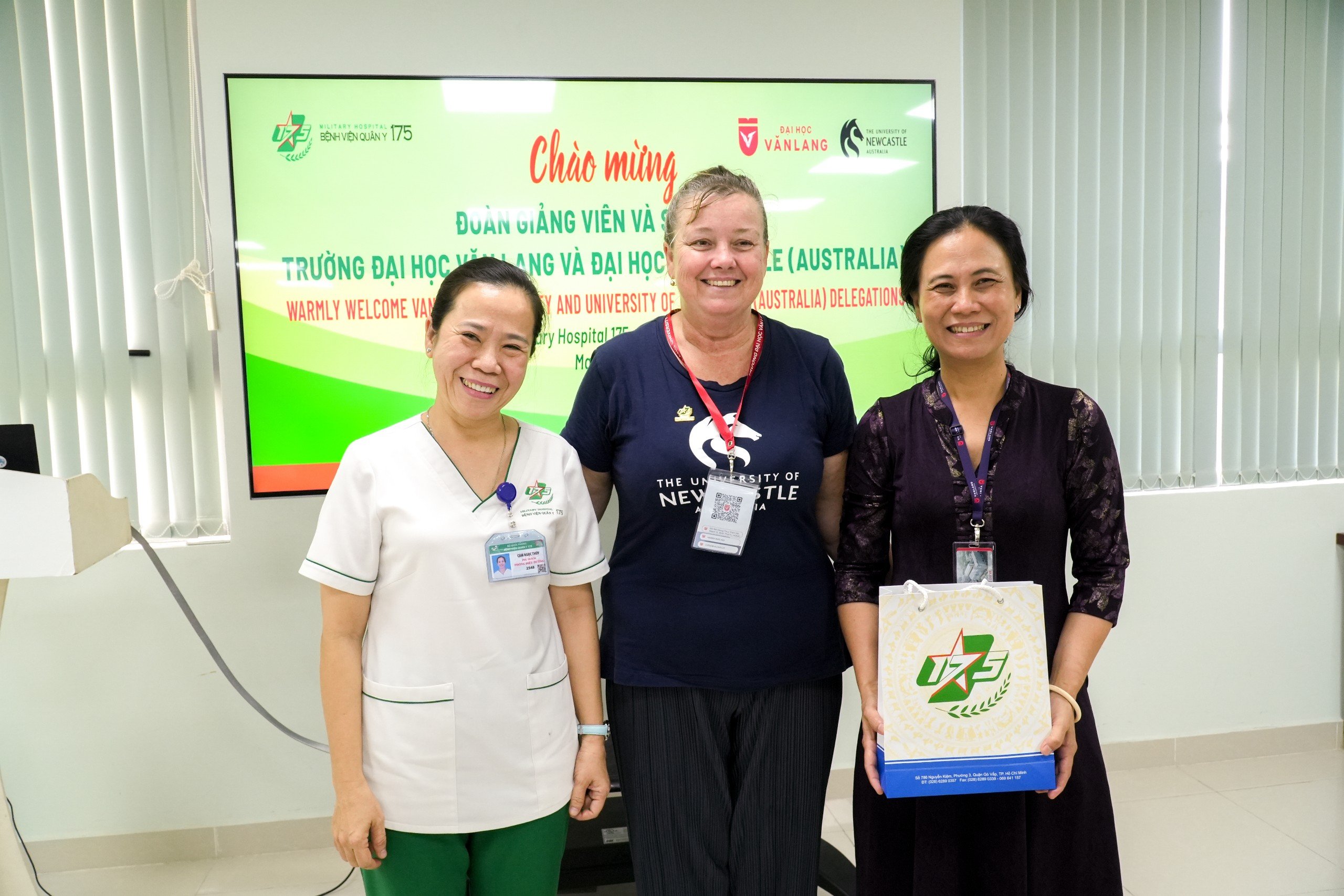 Vừa qua, Đoàn sinh viên thuộc khối ngành Sức khoẻ của Đại học Newcastle (Australia) và Đại học Văn Lang đến tham quan, học hỏi thực tiễn về công tác chăm sóc sức khoẻ tại Bệnh viện Quân y 175.